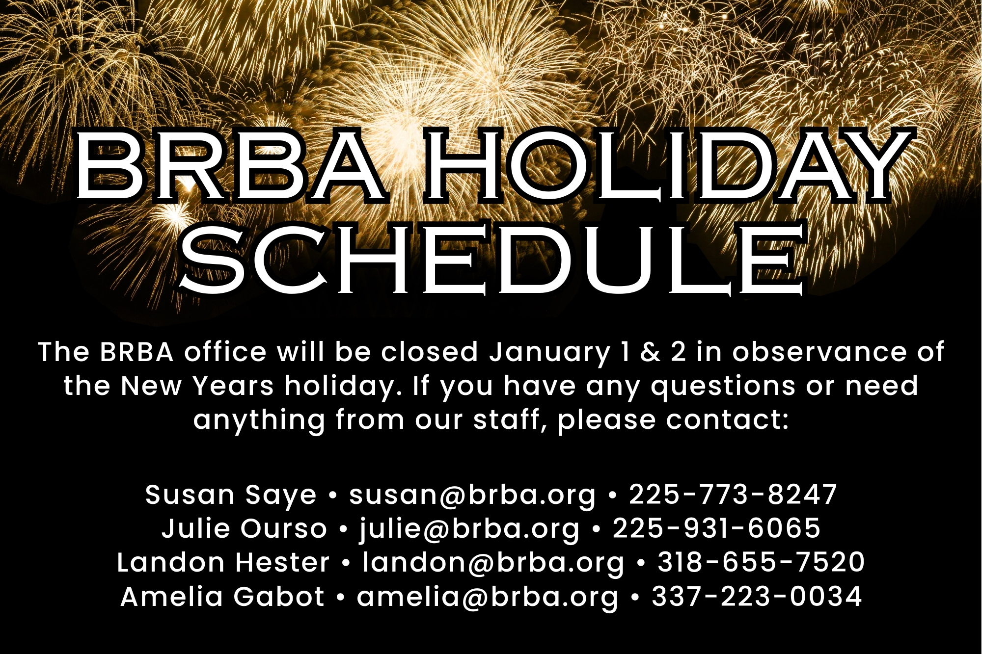 BRBA members who wish to volunteer can contact Lynn (225-214-5564).
